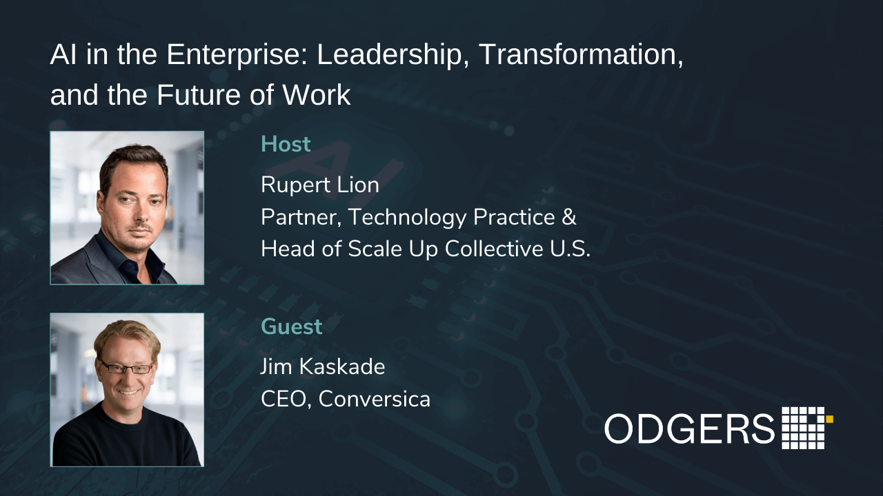 Rupert Lion, Partner in Odgers' Technology Practice and Head of Scale Up Collective at Odgers US, sits down with Jim Kaskade, CEO of Conversica and seasoned Silicon Valley AI leader, to explore how AI is transforming enterprise technology, leadership, and workforce strategy.