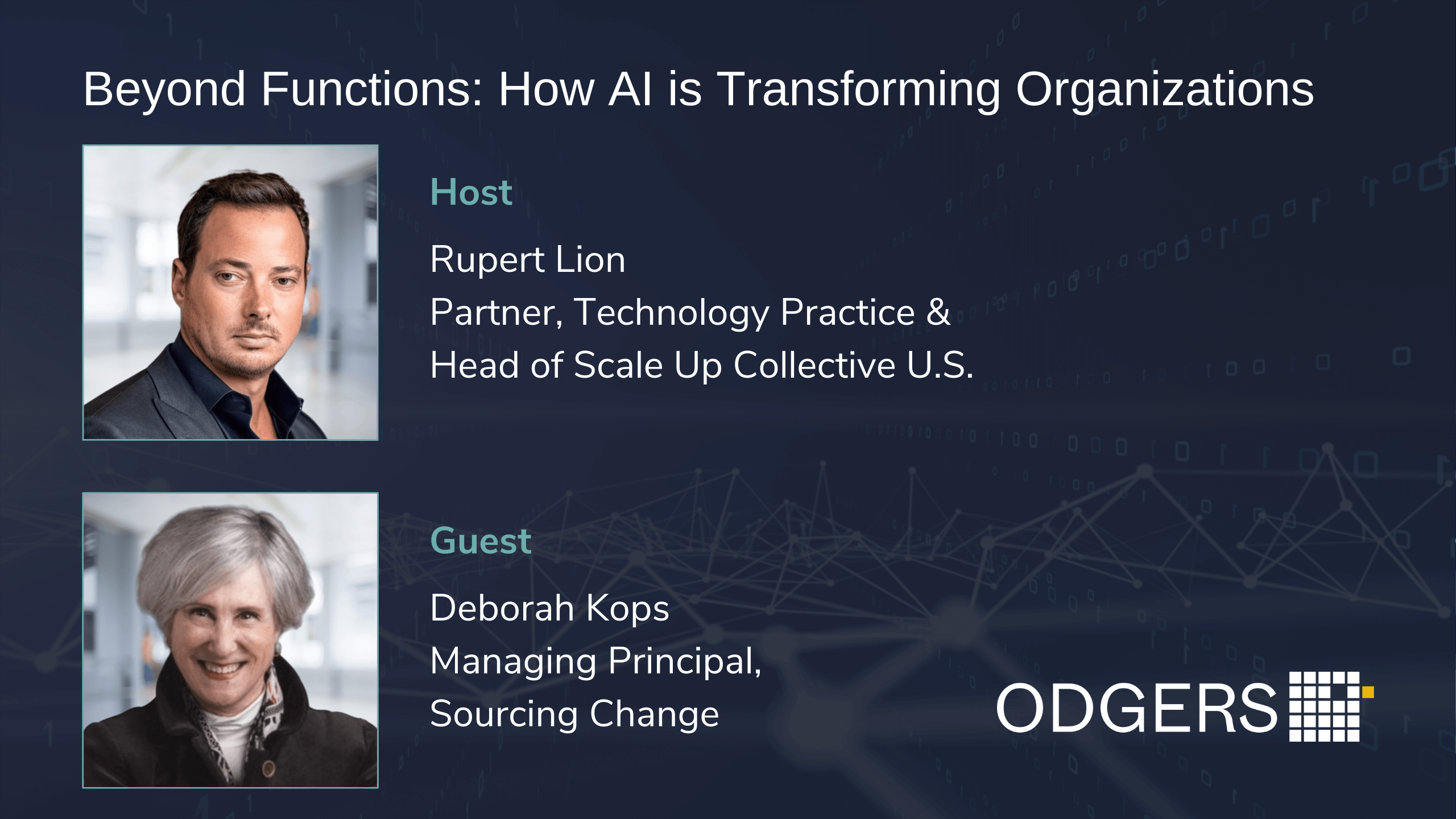Rupert Lion, Partner in Odgers' Technology Practice and Head of Scale Up Collective at Odgers US, sits down with Deborah Kops, global business services and governance leader, to explore how AI is reshaping organizational design, work, and capabilities.