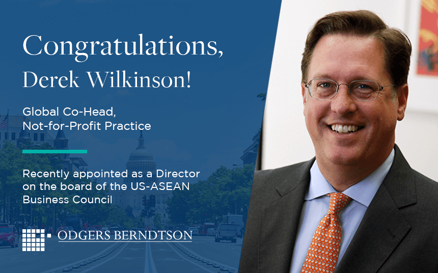 Odgers Berndtson is proud to announce that Derek Wilkinson, Partner and Global Co-Head, Not-for-Profit Practice, has been appointed as a Director on the board of the US-ASEAN Business Council. Derek's term on the board began on January 1, 2024, marking a significant step in his distinguished career.
